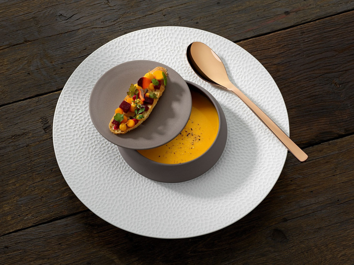 A DEGRENNE szakemberei lelkiismeretesen állnak a mesterszakácsok mögött, és támogatják őket kiváló termékekkel a mindennapi munkájukban. Az asztalterítés tekintetében egyedi termékek egész sorát kínálják: evőeszközök, porcelán étkészletek és poharak a svédasztalos reggelitől a szobaszervizig és az a'la carte asztalig.